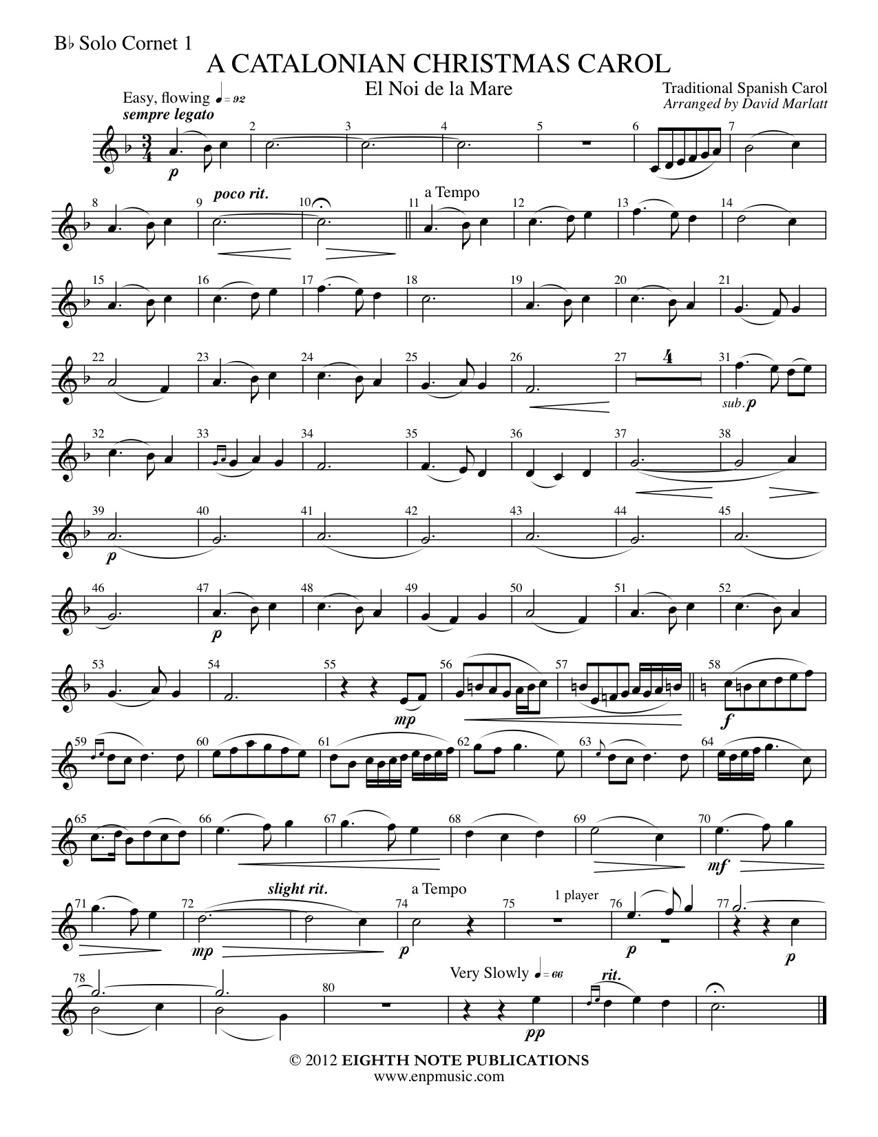 This traditional folk song from Catalonia (a region in Spain) has been regularly sung during the Christmas season all over the world. There are also numerous instrumental versions, including notable ones for solo guitar that are very popular. This arrangement begins like the guitar versions - simple, light and clean. It grows to be more full and sonorous than a guitar ever could, before ending, as it began - peacefully.