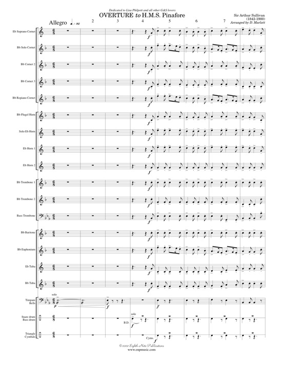 Sir Arthur Sullivan wrote many pieces for operettas but none was better received than the music to H.M.S. Pinafore. It had a terrific 700-night run once it opened and its popularity continues today. This arrangement is the Overture which captures many of the famous and tuneful themes found in that operetta. Light-hearted and fun, this music is a toe-tapper for audiences and a thrill to play for musicians.