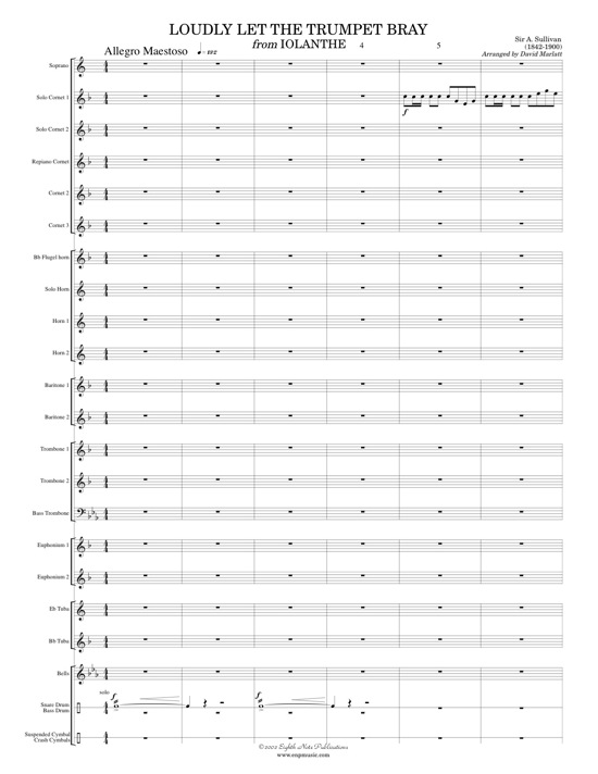 This is Sullivan at his best! The melodies of the famous Arthur/Sullivan team have become legendary and their musicals are performed all over the world. This is a chorus from Iolanthe in which the all-male chorus (played in this arrangement by the low brass) and cornets are featured. The tuneful melodies make this light hearted piece ideal for playing at a concert in the park. |
