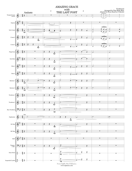 This is a very clever arrangement that combines The Last Post and the hymn tune Amazing Grace. The band parts are very reasonable for all musicians but the solo trumpet (bugle or cornet) part should be played by a more advanced player. This piece can be performed on Remembrance Day or Veterans Day services, or on other solemn or dignified occasions. |