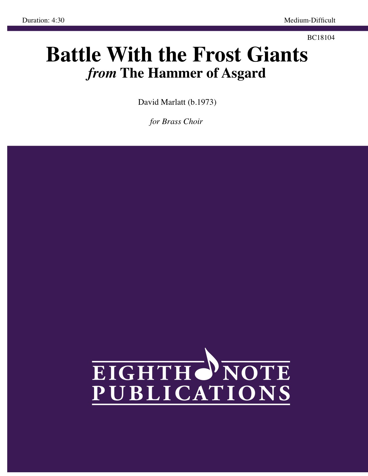 Battle with the Frost Giants is the third and final movement to The Hammer of Asgard, an original soundtrack style composition for brass and percussion. Using Norse mythology as the theme, The Hammer of Asgard introduces and explores the gods and other characters that make up these famous stories. Wailing Hollywood horns, brilliant trumpets, energetic percussion writing and powerful low brass parts make this fun to play for all and a wild adventure for audiences. |