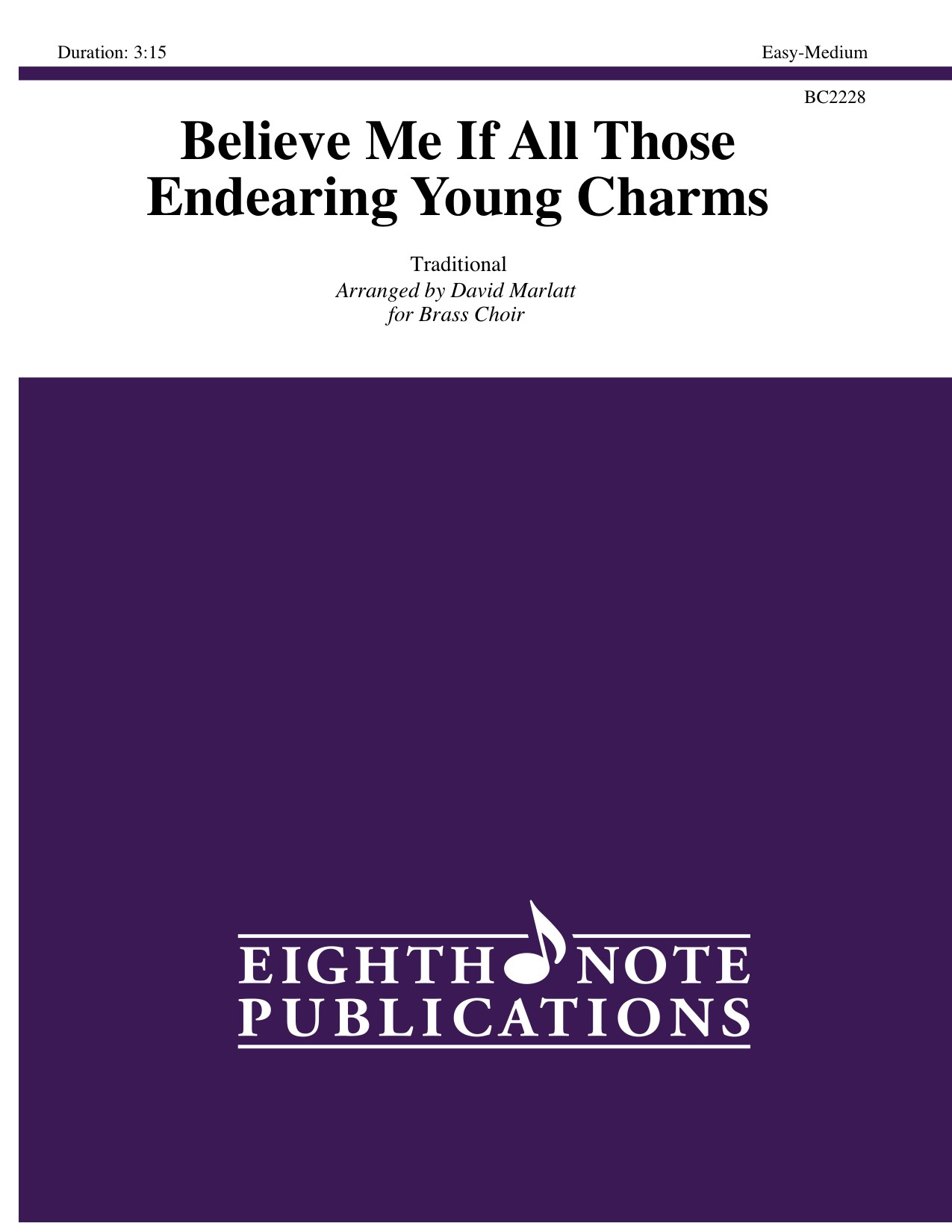 This tune is one of the favourite and most often recorded folksongs of the British Isles. The arranger has given the beautiful flowing melody to the euphonium, trumpet, trombone and flugel horn at different times. There is also a "chamber" section featuring a quartet of 2 trumpets, flugel and euphonium. Believe Me If All Those Endearing Young Charms would also make a great warmup and tuning piece for a brass choir of any level. It has been scored here for 3 trumpets, flugel horn, 4 horns, 3 trombones, euphonium, 2 tubas and percussion. |