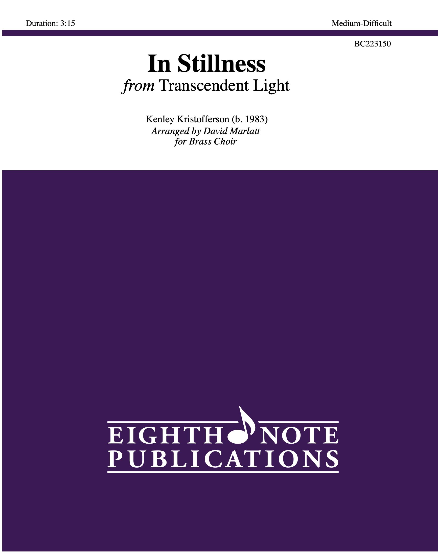 In Stillness reaches for that which is greater than ourselves. It may be one god or many gods, or it may be greatness of the past or future, but it is the light that is just beyond our mortal reach. This piece starts slowly and grows in intensity over time until the glorious climax, after which it relaxes in tone and volume before reaching a short final section of quiet tension. This ends with a warm tonic chord, signifying the light that greets all of us at the end. |