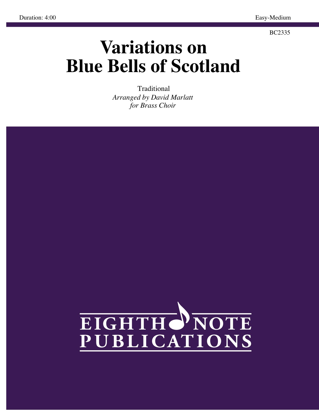 This folk song has been arranged in a theme and variations format for a solo trumpet (or cornet). The band plays the accompaniment figures as well as the break strains. The solo part is very reasonable (similar to the version in the back of the Arban s) and sounds harder than it is. This is a great piece for showing off that talented soloist in your ensemble. It has been arranged for a brass ensemble consisting of 4 trumpets(solo+3), 2 horns, 3 trombones, euphonium, 2 tubas and percussion. |