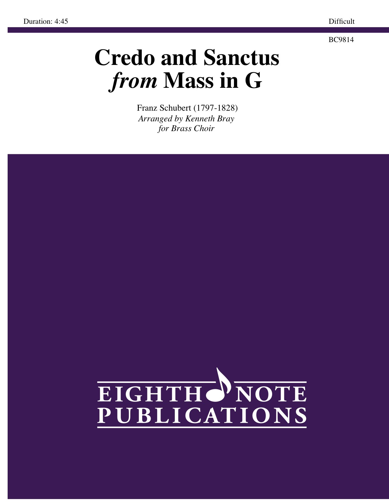 A popular Mass for brass! Ken Bray's magnificent arranging skills are once again apparent with this work. The key has been altered to be more idiomatic for the brass choir and some of the development material has been shortened. Scored for an ensemble of 4 trumpets (1 piccolo), 4 horns, 3 trombones, euphonium, tuba and percussionist, this versatile group performs this large scale work with all the grandeur that the composer intended. |