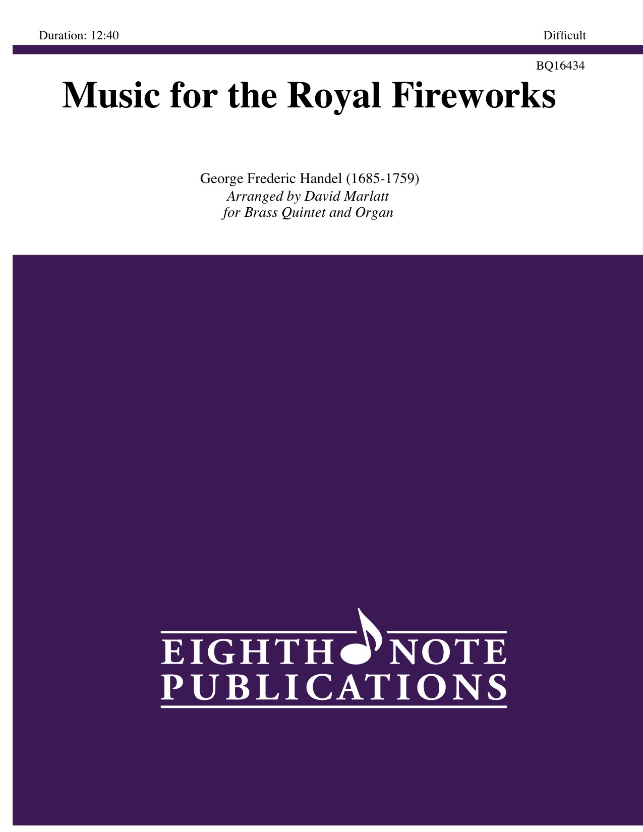 Scored here for brass quintet and organ (with optional timpani), this set of famous pieces can now be performed by 6 people. There are no cuts or reductions, this is the complete Royal Fireworks. This would make a truly impressive work on a concert or recital program. |