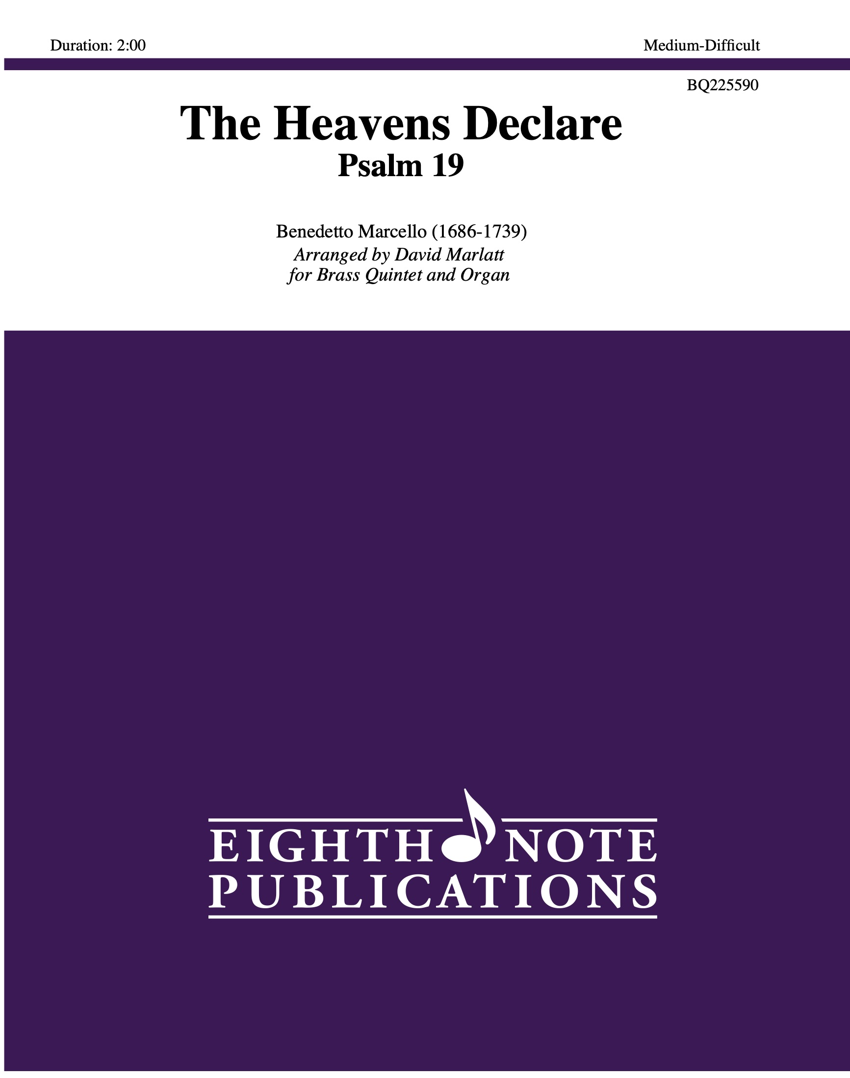 This is an arrangement of the opening movement of Psalm 19 by Italian composer Benedetto Marcello. Although it remains a popular vocal piece, it is very fanfare-like in nature and suits the energy of a brass quintet and organ.