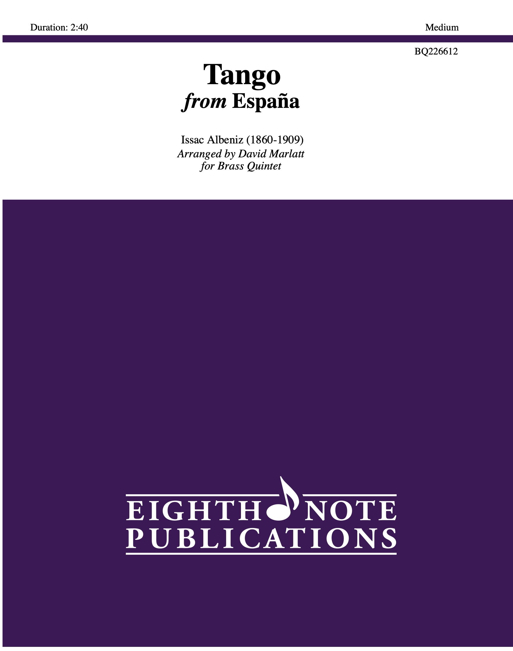 This famous Tango is a piano piece written in 1890 by Spanish composer Issac Albeniz. It is part of the suite Espana (Preludio, Tango, Malaguena, Serenata, Capricho Catalan and Zortzico) which is a collection of short pieces with brilliant Spanish flair and harmonies. |