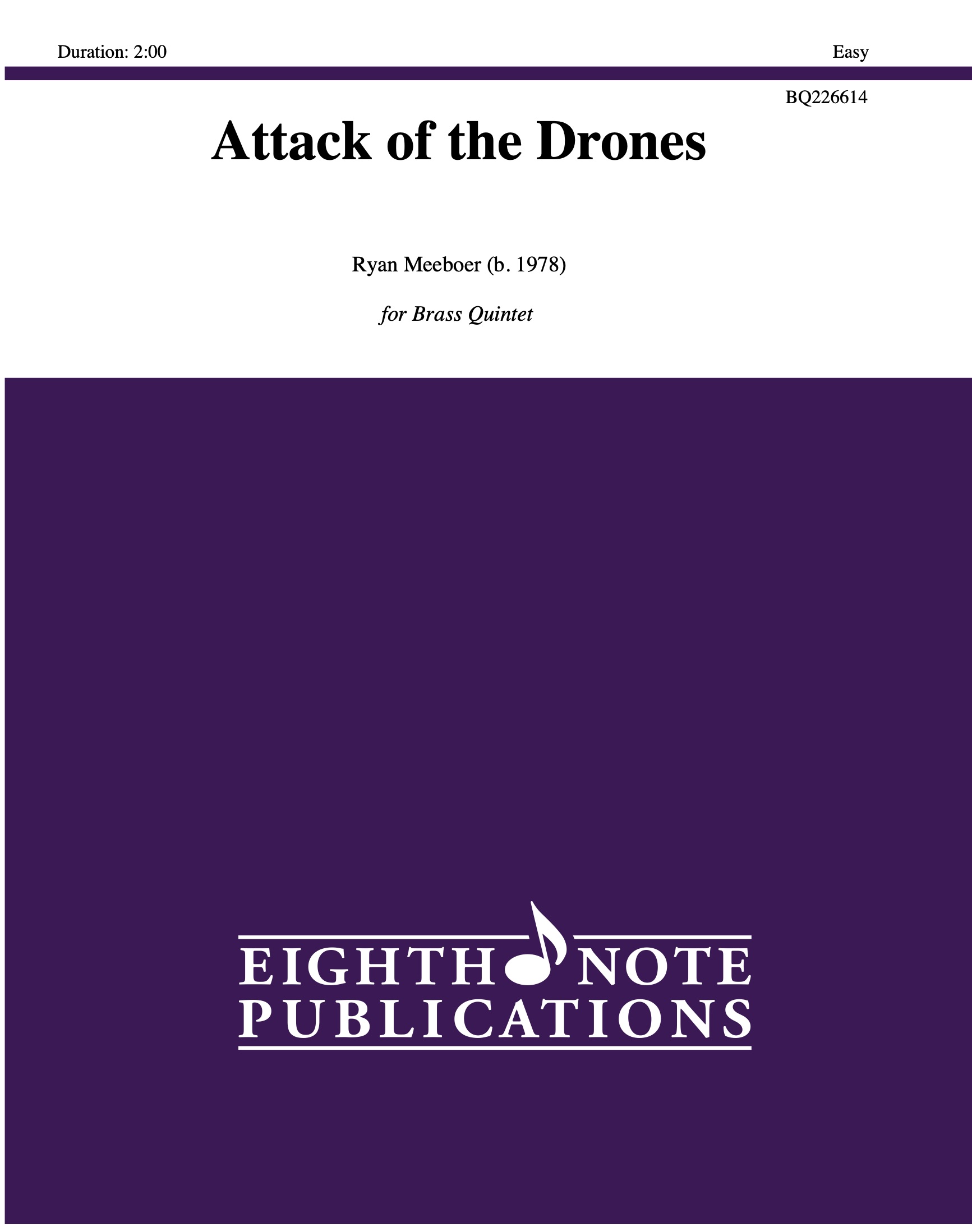 In music, a drone is a repeated or sustained pitch that provides a harmonic foundation for melodies and harmonies to build around it. This definition describes this piece perfectly as the entire piece revolves around the aggressive drone introduced in the opening of the piece. This is full of energy and exciting parts for all players. |