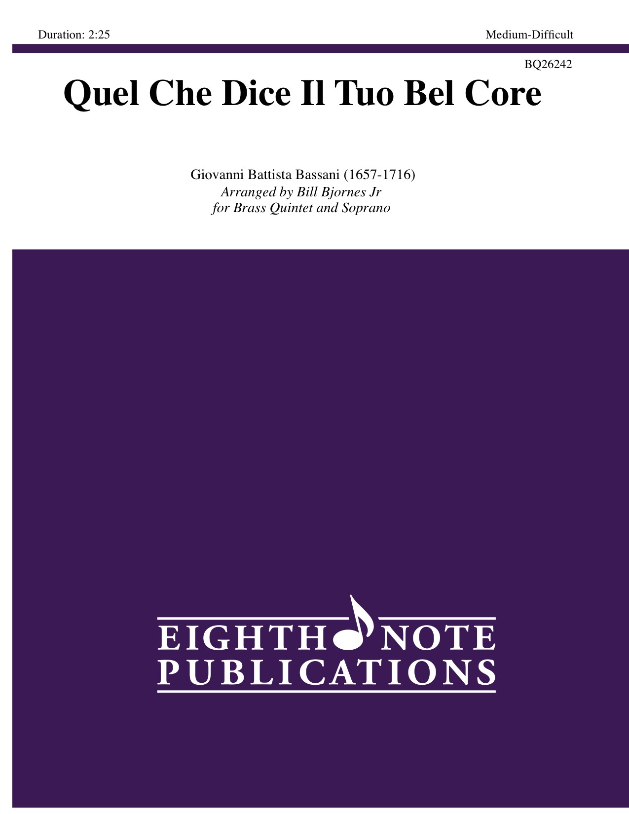 For years, trumpet players have aligned themselves with solo singers, especially sopranos, to perform the great Baroque repertoire for trumpet and voice. Organ reductions were created to replace the string parts making this great pairing more portable. Now these terrific trumpet and voice duets can be played by a standard brass quintet. The solo trumpet part remains the same (also allowing for performance on natural trumpet) and the remainder of the quintet performs the string parts. The 2nd trumpet performs on flugel horn to create a greater cohesion within the ensemble allowing for the bright piccolo (or natural) trumpet sound to float above the ensemble in duet with the soprano.