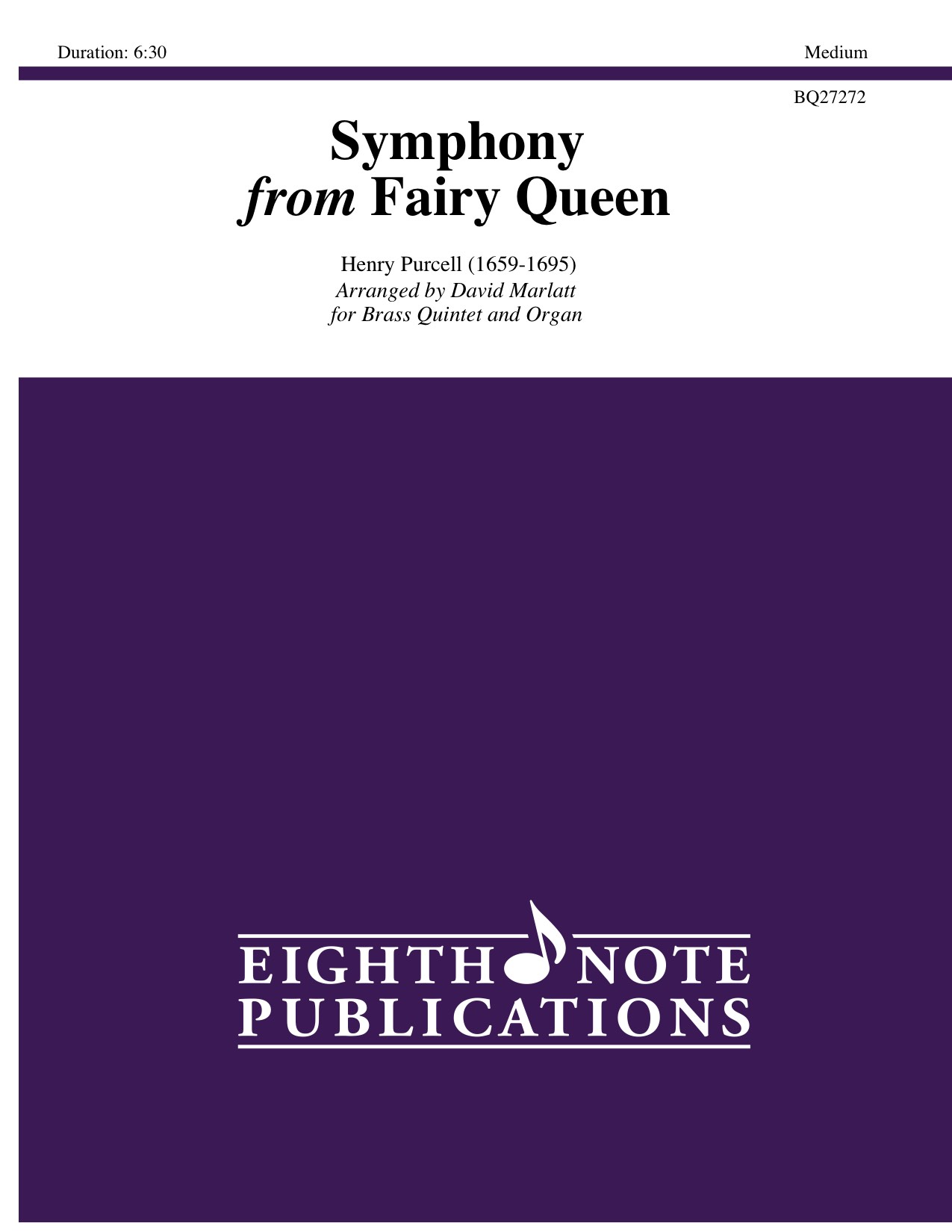 The Fairy Queen is one of Henry Purcells semi-operas which was derived from Shakespeares A Midsummer Nights Dream. The Symphony is an all-instrumental work which opens Act IV of the opera. It was originally written for two trumpets, timpani, strings and continuo and it is score here for brass quintet and organ. |