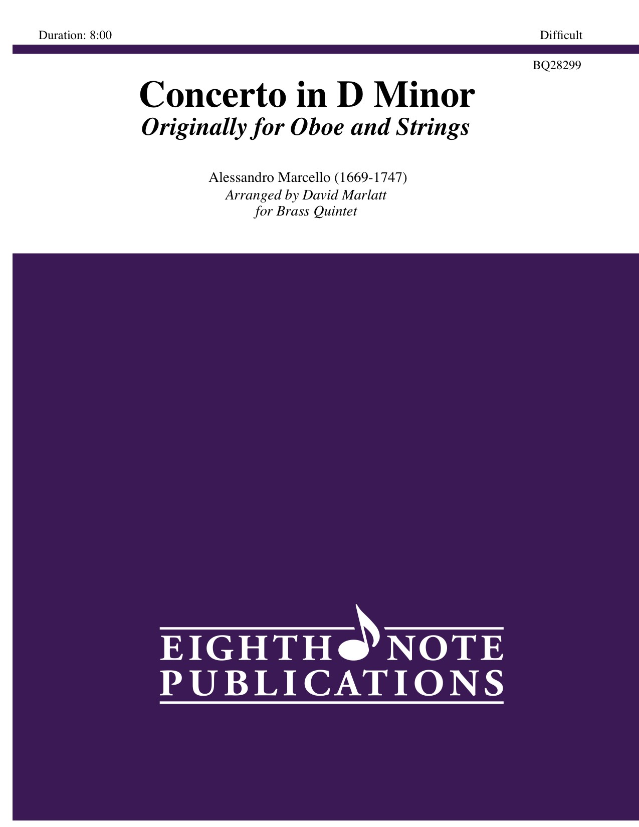 This is the famous Oboe Concerto arranged as a trumpet feature. Elegant recordings by Maurice Andre and others brought this piece into the trumpet world and it is often performed on piccolo trumpet (there has been an alternate part provided for Eb as well). The second movement is a haunting simple line floating above a steady pulse in the other four parts. It is an often requested piece for weddings and church services. |
