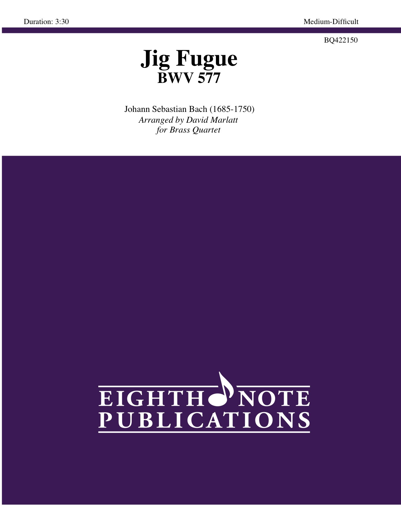 The famous Jig Fugue by Bach is a favorite with organists. It is lighthearted and energetic with its rollicking triple meter. Great parts for all players keeps everyone active in this Baroque gem.