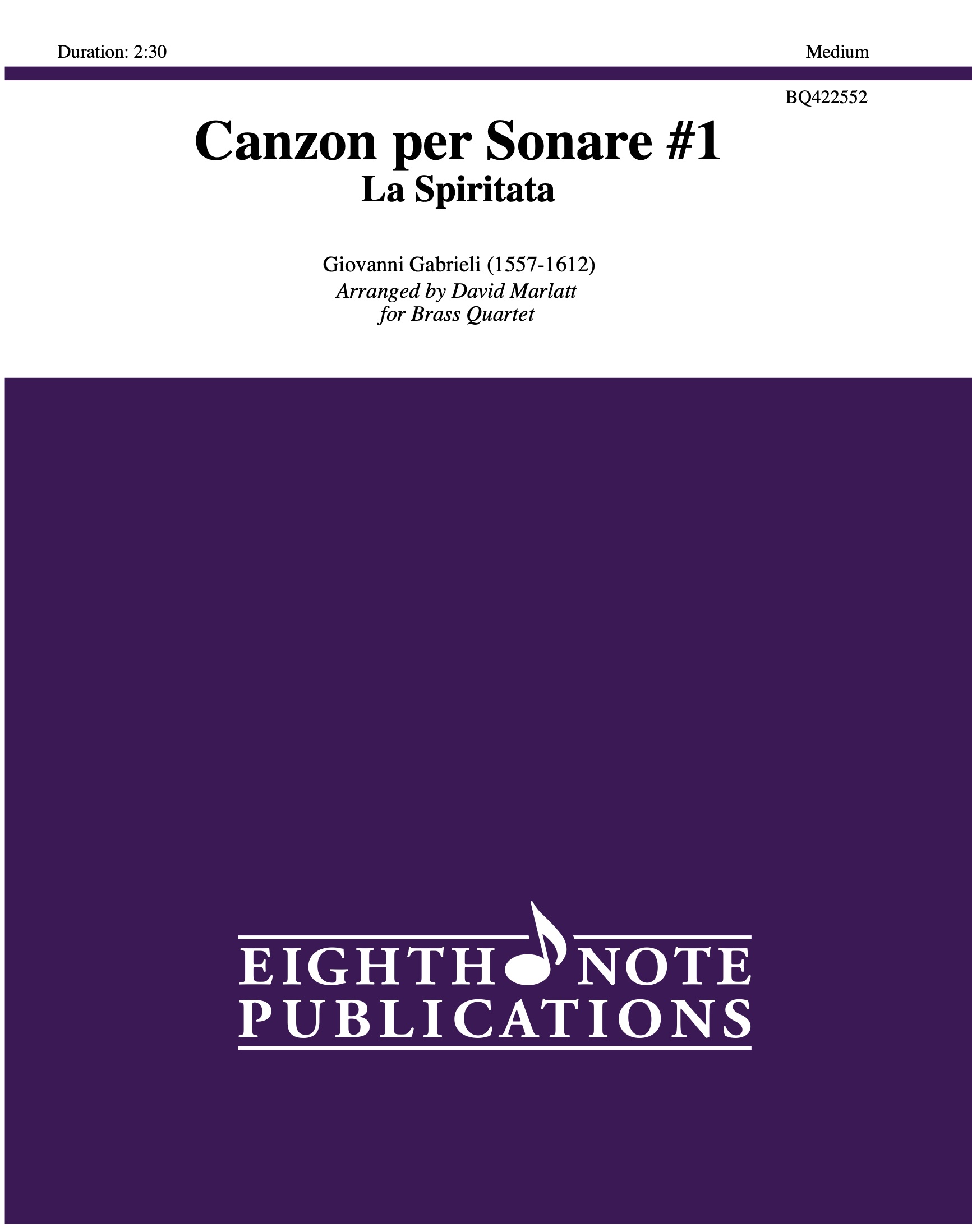 There have been many recordings of the famous Gabrieli canzoni for various combinations of wind instruments. This arrangement is a welcome addition to this repertoire. Antiphonal spacing is always a successful performance practice allowing the passing of melodic material to be enhanced by the spatial distance. |