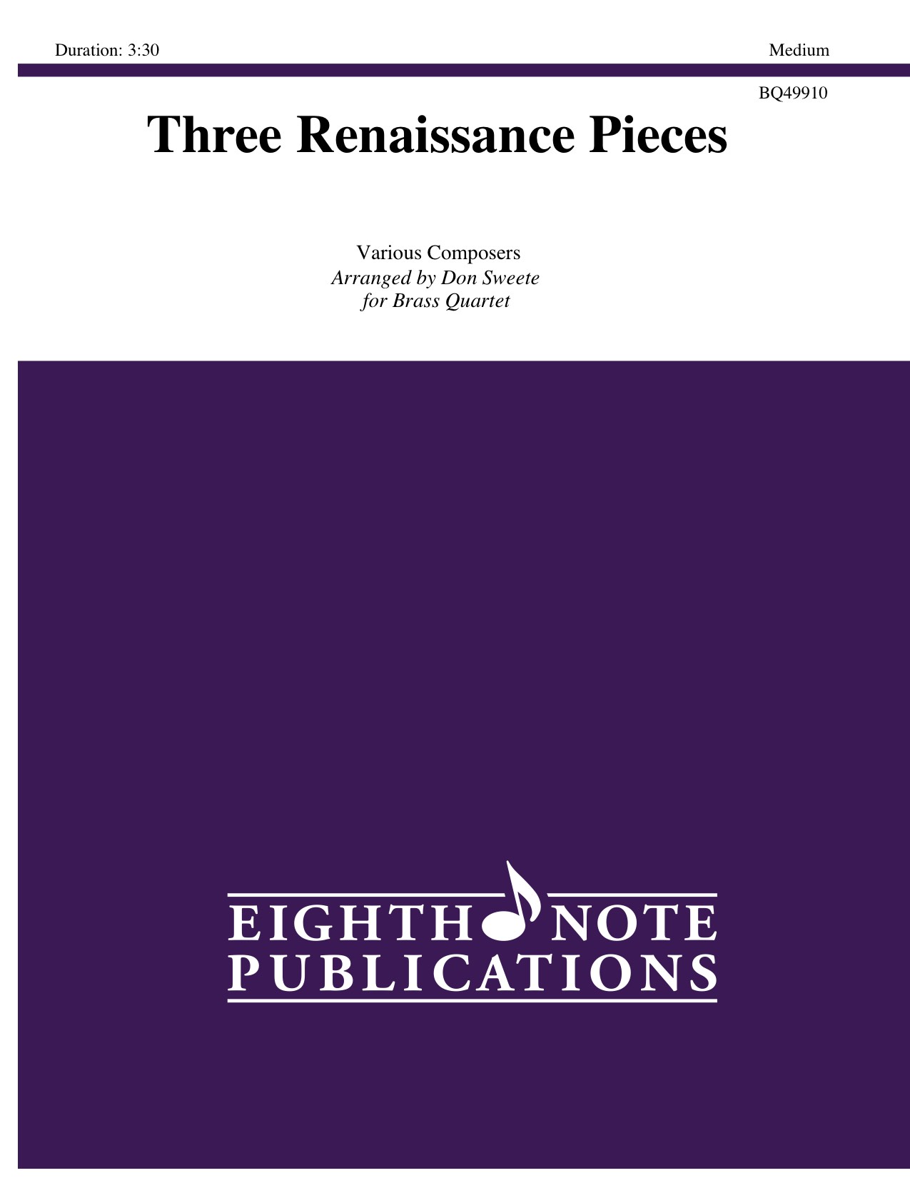 The three Renaissance pieces selected in this suite were composed by Des Pres, De La Rue and Issac. Each piece could stand alone or all three pieces could be performed as a suite. This arrangement could also be combined with Three Chansons also arranged by Don Sweete available from Eighth Note Publications. |