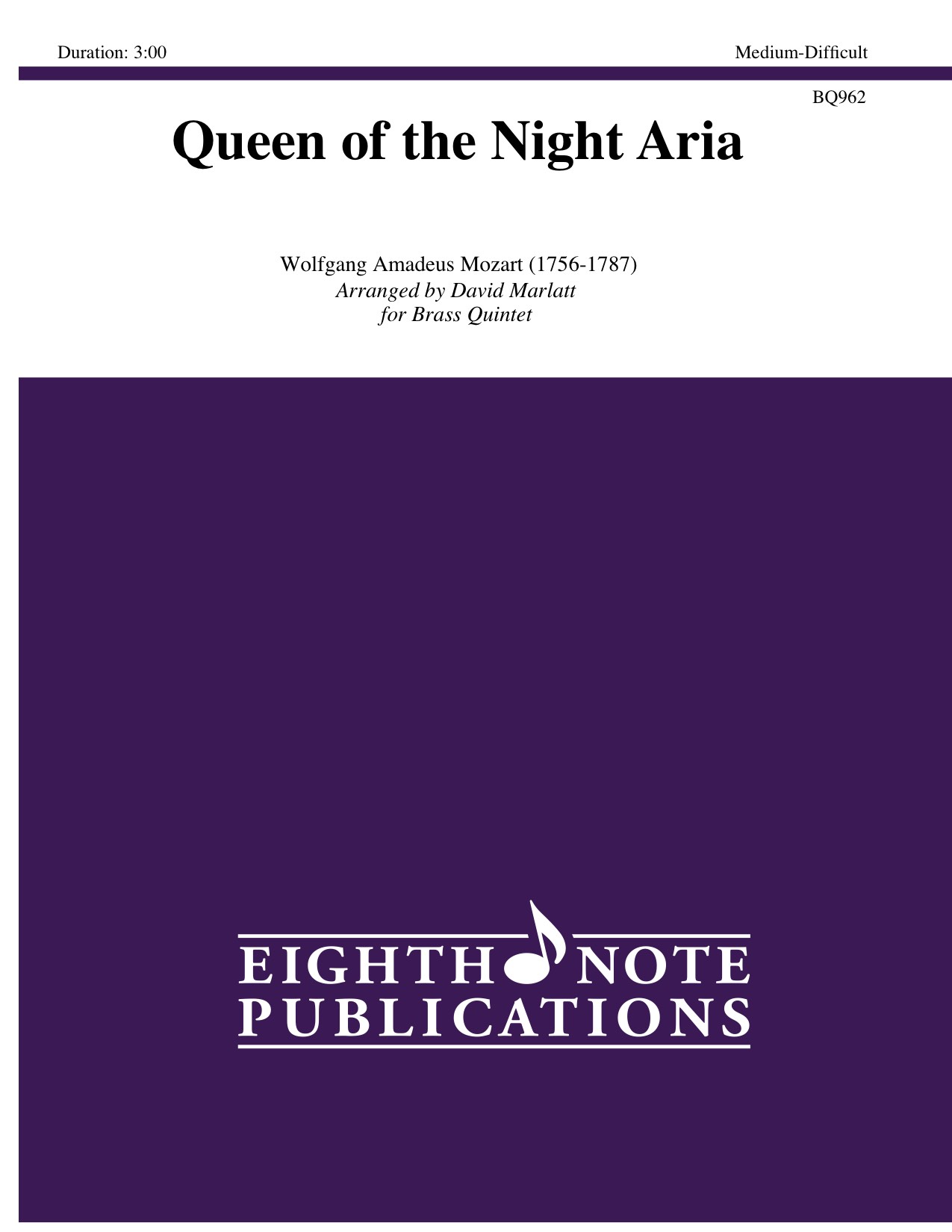 A showpiece for the piccolo trumpet. The soaring coloratura solo has been transposed down a step to facilitate the brass quintet. While the piccolo is playing Fs above high C, the remainder of the ensemble is supporting with avery playable accompaniment that has been reduced from the orchestral part. Although the solo piccolo trumpet (or alternate E-flat trumpet) part is demanding in range, the other parts should not prove to be difficult to coordinate. This classical favourite will amaze audiences and perhaps give them a good introduction to the piccolo trumpet. |