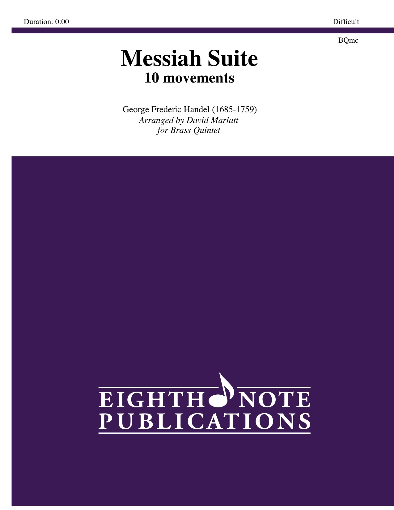 The premise of this set of transcriptions was to provide a substantial suite of pieces from Handel's Messiah for the performing brass quintet. The difficulty in the various pieces range from quite easy, which a high school ensemble could play with little rehearsal, to fairly difficult, which could challenge a professional, working quintet. Piccolo and E-flat trumpets are used extensively and the range and technical demands on all players makes for interesting and challenging parts. There have been selected movements that are features for 1 (or more instruments). Each member in the ensemble has at least 1 movement that is their solo and this allows all the talents in a group to be displayed. After a quick glance over the list of 10 pieces one quickly notices that the famous Hallelujah! is not among them. This has been done intentionally. There are many renditions of this chorus already at a brass player's disposal, so any of those arrangements would help to augment this suite. |
