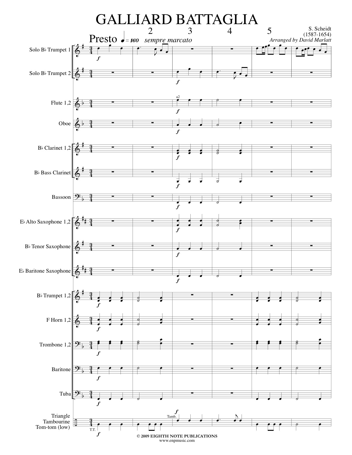 This is a piece that requires no introduction to trumpet players. The famous Canadian Brass quintet arrangement has been played by quintets all over the world for years. This arrangement, for 2 trumpets and band, makes this famous piece available in a new setting. The flashy scales and the great antiphonal battle make this a real audience pleaser. |