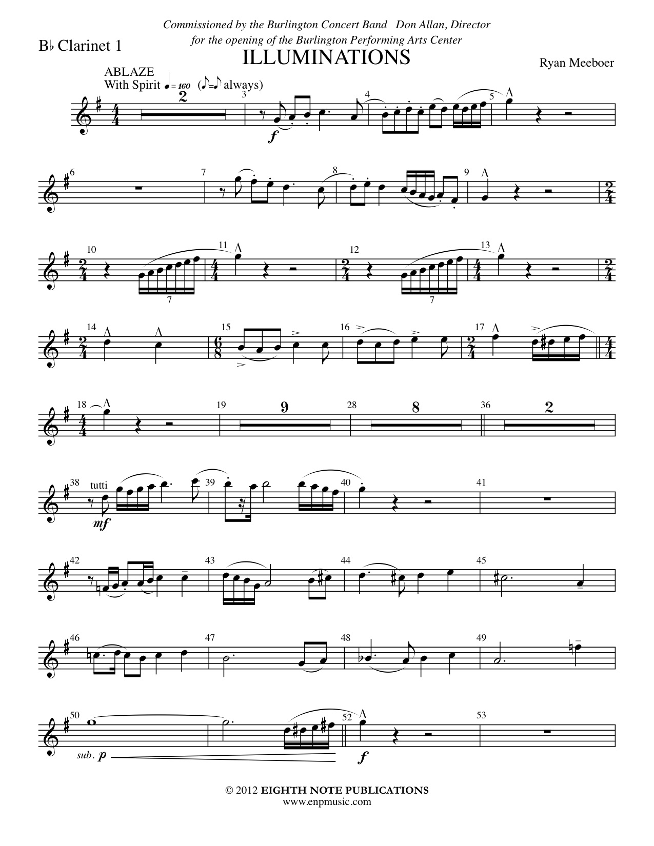Illuminations is a dramatic and rhythmically exciting overture for band. It is set in three contrasting sections: Ablaze, Glistening and The Radiance. Each with its own character and style. Brilliant fanfares, memorable themes and fun energetic rhythms make this work perfect for concert or contest use. |