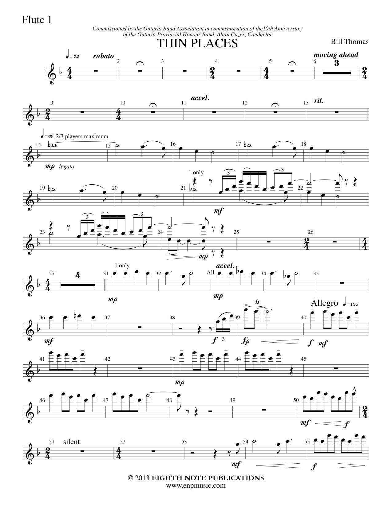 The concept of thin places comes from the ancient Celts who believed that there are places on the earth where the distance between this world and the world beyond is very slight. Thematic material comes from the hymn Nearer My God to Thee and from melodies of the indigenous people of North America. Haunting, dramatic and powerful. |