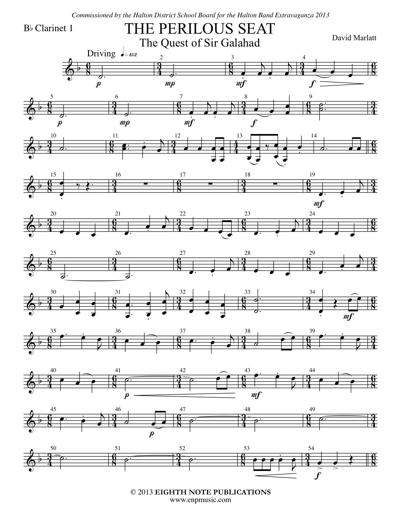 The Perilous Seat was a chair intentionally left vacant at King Arthur s round table. It was reserved for the bravest knight who was willing to take on the quest for the Holy Grail. If someone sat in this seat and was unworthy, they immediately died. Sir Galahad survived this test and King Arthur proclaimed him the greatest knight ever. The shifting meter (6/8 and 3/4) is great to introduce students to the concept of a shifting pulse - both 6/8 and 3/4 have 6 eighth notes but the emphasis of the accents shifts the feel back and forth creating a fun groove. |