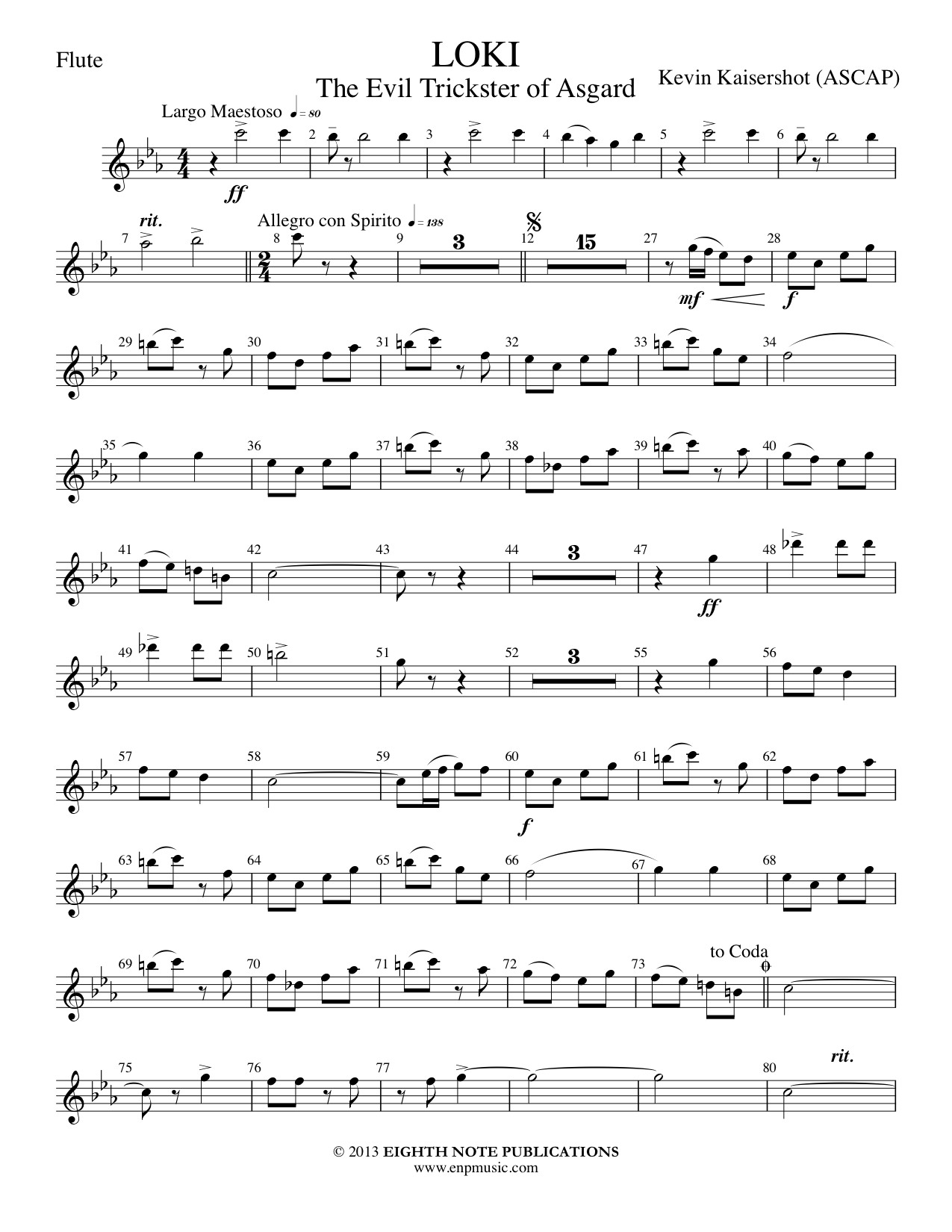 Loki is said to be the step-brother of Thor and a constant source of irritation to all with whom he comes in contact. The music therefore depicts his playful yet devious nature. In this work the composer tips his hat to several of his favorite composers including Prokofiev, Richard Strauss and Claude T. Smith. |