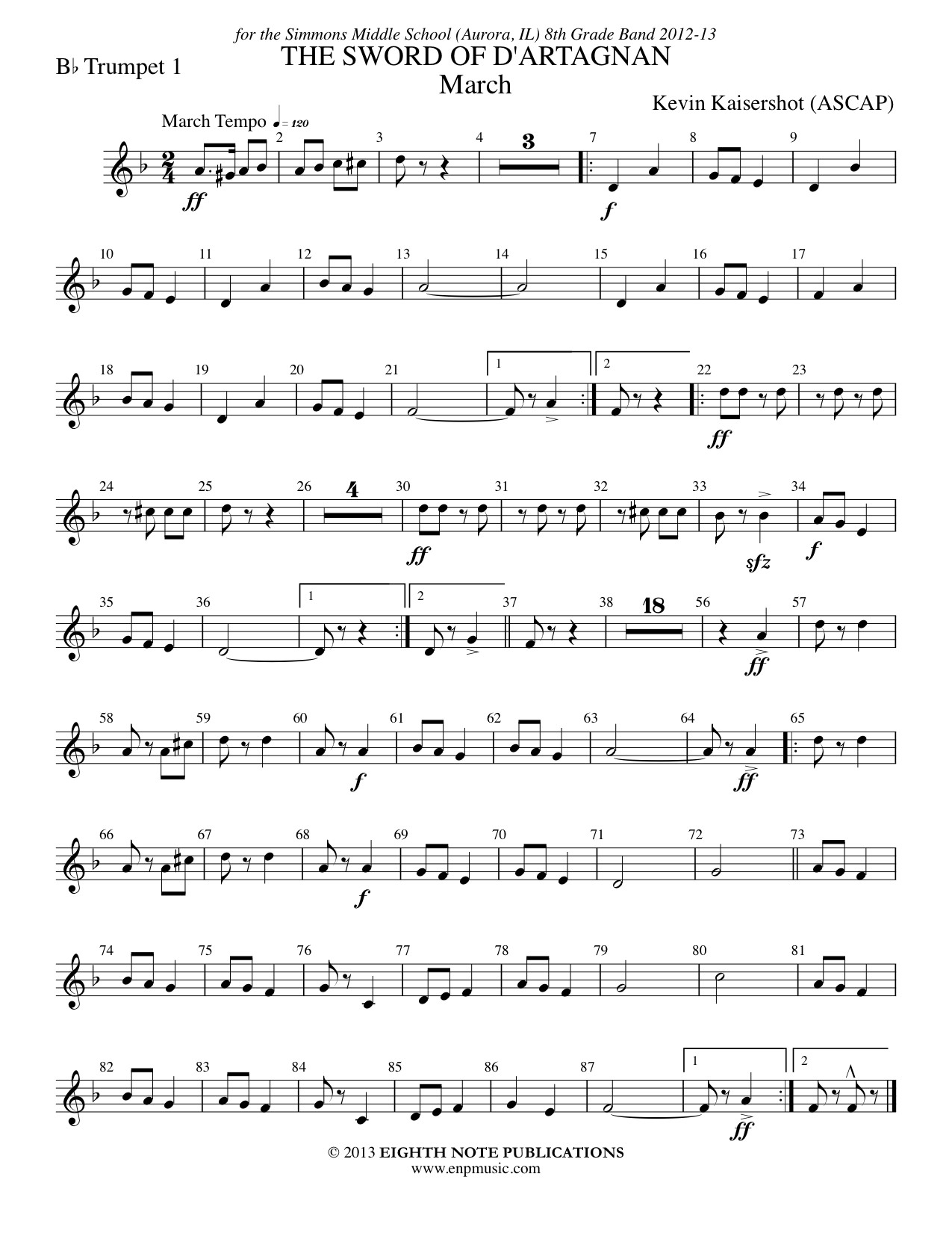 This piece is a lively action packed adventure compressed into a standard march form filled with sword play and spirited exploits. Fun to play and listen to.