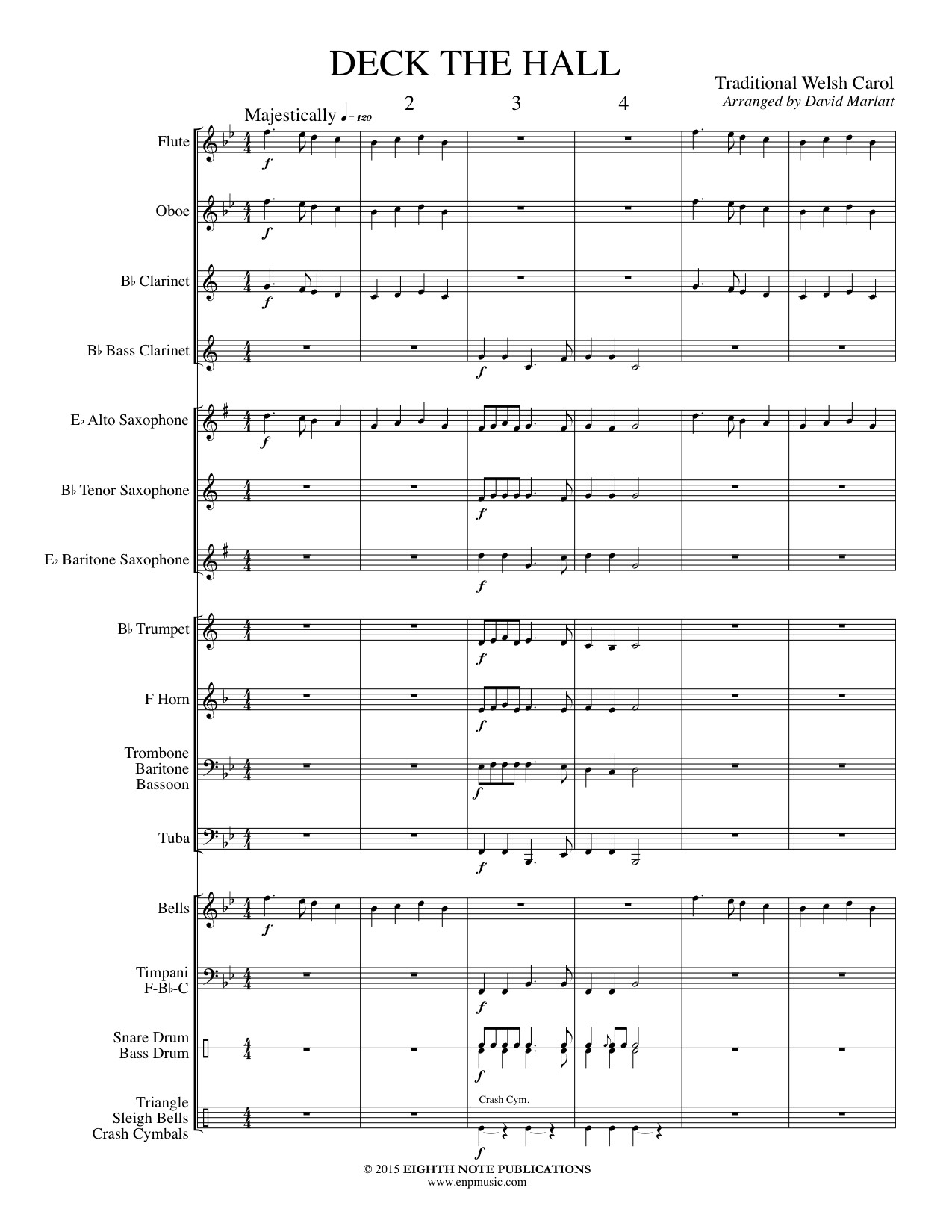 Deck the Hall is a traditional Christmas and New Years carol. This arrangement features call and response between a few instruments and the remainder of the band allowing lots of players to have short sections of melody. Even the low guys get a fun chance at the melody. Really bring this out and have fun with it. They don t get the tune very often! |