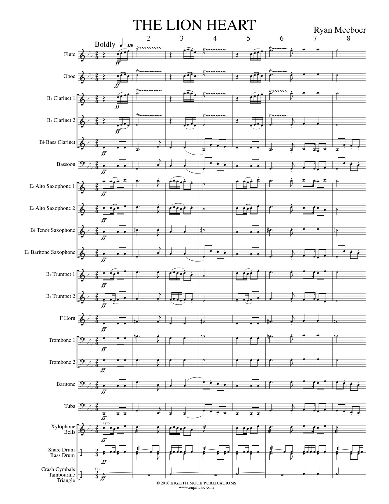 The Lion Heart is a great way to describe one who is brave, be it a soldier, knight, or a member of society who risks their lives everyday to keep others safe. The piece is meant to be strong from start to finish, with some short contrasting sections to allow the band to demonstrate its various abilities. This fun symphonic march offers interesting parts for all. |