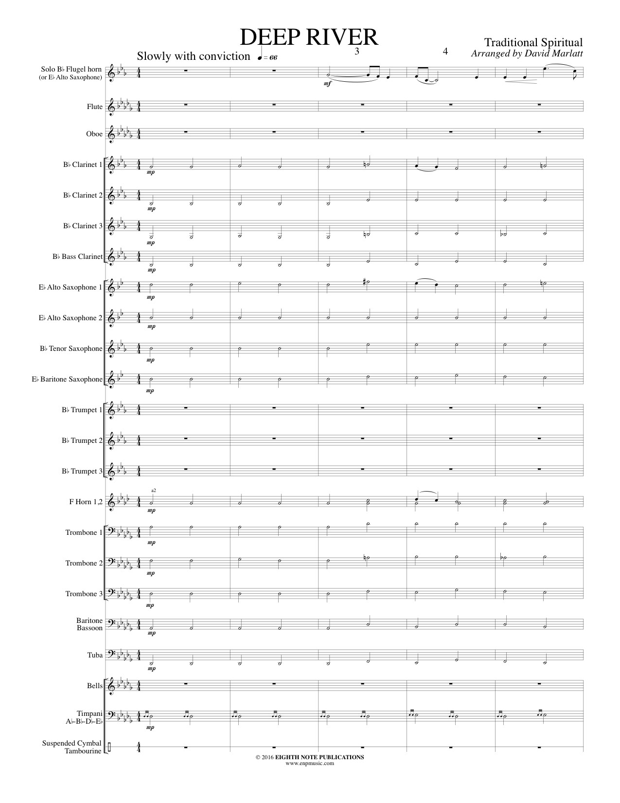 Deep River has been arranged here to feature the smooth sound of the flugel horn or alto saxophone. This famous melody is supported by an interesting accompaniment with jazz harmonies and rhythmic pulse. Spirituals are ideal on a concert program or for use at a competition. |