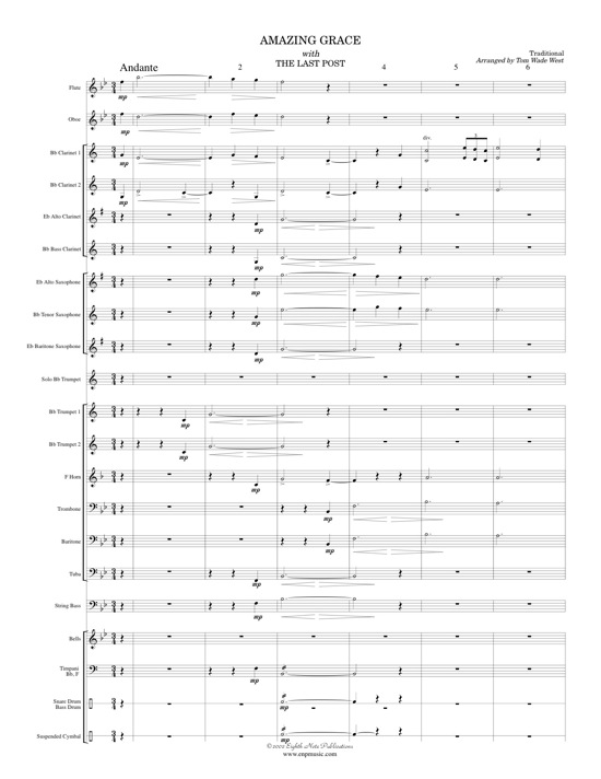 This is a very clever arrangement that combines The Last Post and the hymn tune Amazing Grace. The band parts are very reasonable for young players but the solo trumpet part should be played by a more advanced player. This piece can be performed on Remembrance Day or Veterans Day services, or on other solemn or dignified occasions. |