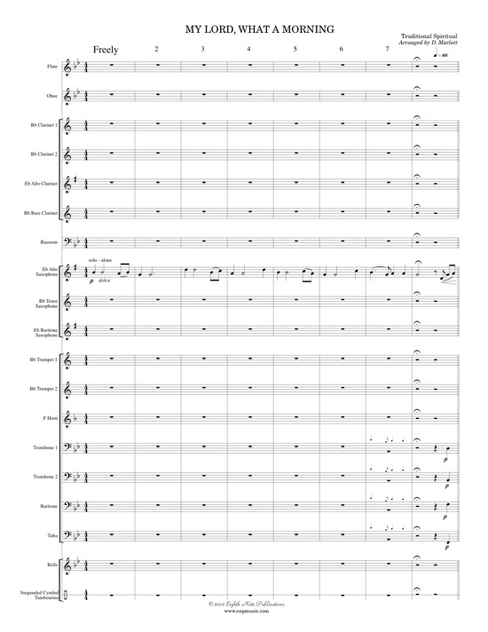This is another great Spiritual. The arrangement opens with an unaccompanied alto saxophone, adds the trombones playing soft chords then builds through the band to create a lush, rich sound. This is an ideal ensemble piece to develop blend, balance and intonation. |