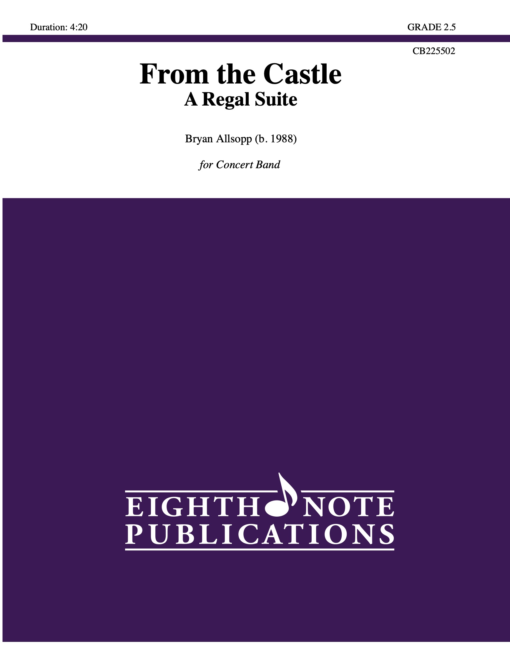 This is a three-movement suite capturing the pomp and majesty of life within a royal castle. The first movement, The King’s Court, captures the hustle and bustle of the busy court. The second movement, The Castle Gardens, depicts the calm and more personal life of the royalty. The third movement, The Royal Ballroom depicts a regal celebration within the castle’s ornate ballroom. |