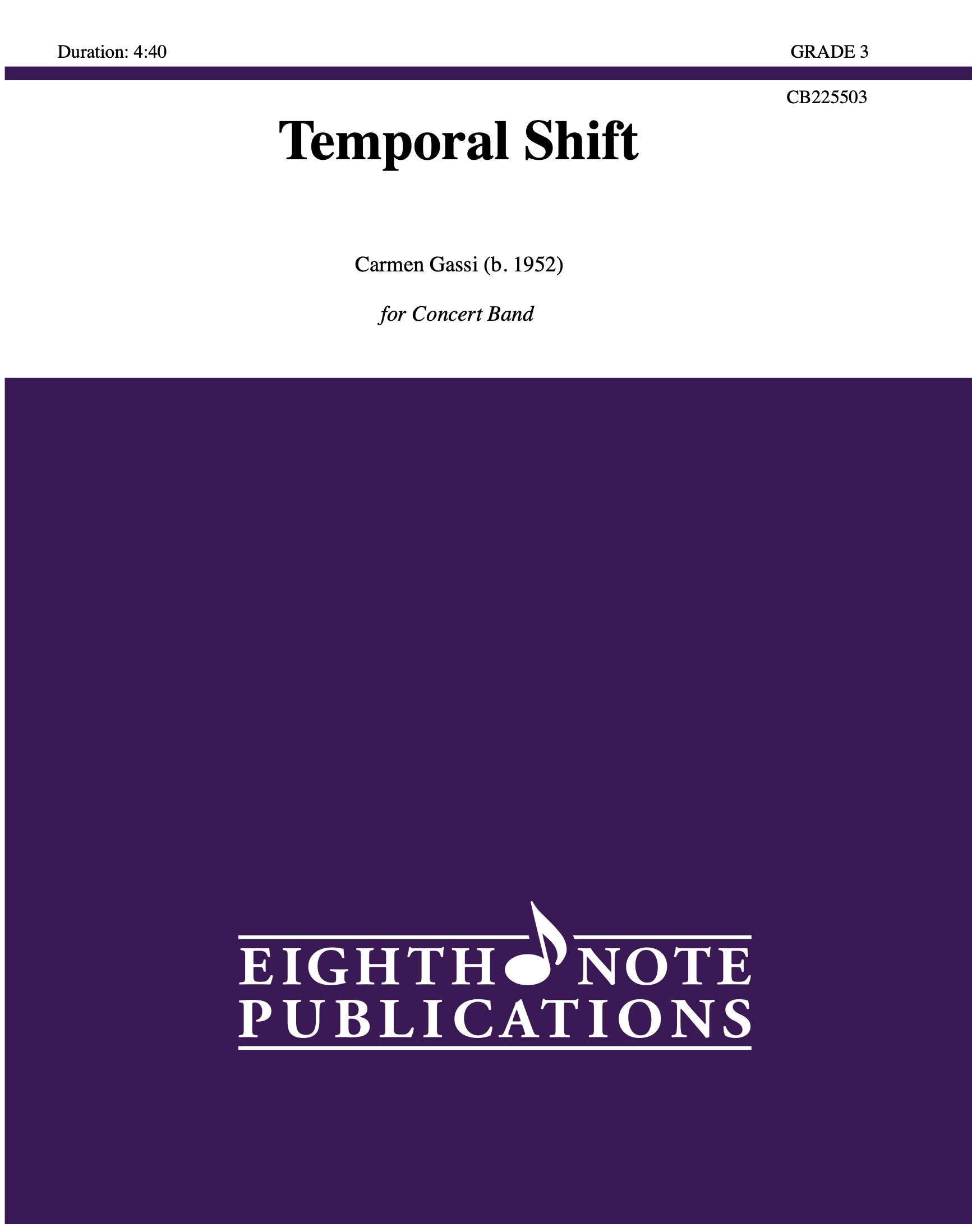 Temporal Shift takes your band on a thrilling journey where meter changes, tempo changes and shifting harmonies create a sense of constant motion. An exciting percussion soli brings the opening section to a close. A lyrical section featuring flute and clarinet solos reflects back to the opening statement before momentum builds to a restatement of the main thematic idea. With dynamic contrasts, evolving textures and meter manipulation, Temporal Shift captures the excitement of musical time shifting. |