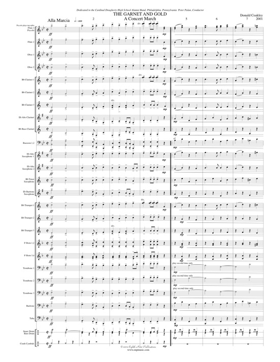 This is an exciting concert march. This work has been dedicated to Cardinal Dougherty High School, in Philadelphia, Pennsylvania, where the composer was the Director of Bands for several years. Great upper woodwind parts set in three-part harmony make this work more interesting than many marches. Driving bass lines and fun brass parts create a sure winner for both performers and audiences. |