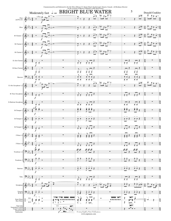 This is an exciting work by composer Donald Coakley. The driving rhythms, lots of percussion and powerful melodic material make this an excellent choice for either concert or contest use. The beautiful slow middle section, in a dark warm key, is framed by energetic fast sections with many changes in meter. |