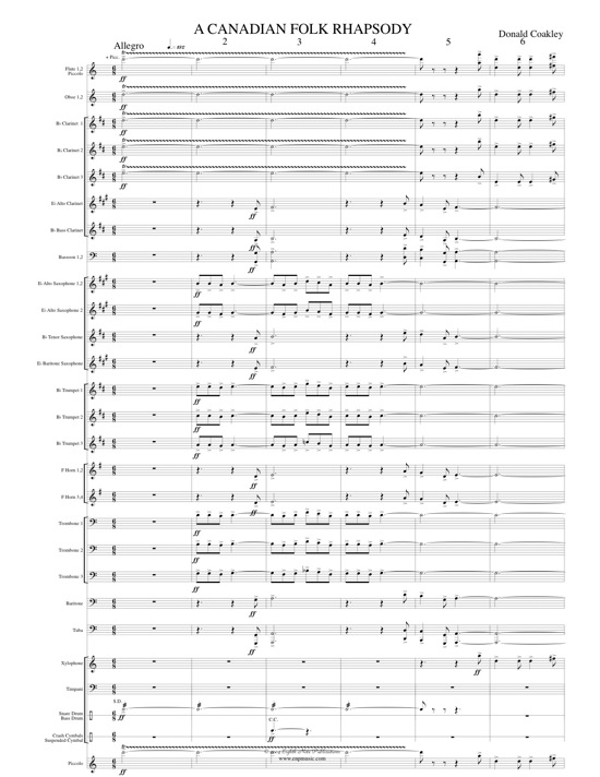 Woven within A Canadian Folk Rhapsody are four folk melodies chosen for their potential to interact successfully within the bounds of a single composition. They are part of the cultural heritage of the two principal ethnic groups which populate Canada - French and English. The songs included in this work are: Flunky Jim, A la Claire Fontaine, The Squid Jigging Ground and En roulant ma boule. |