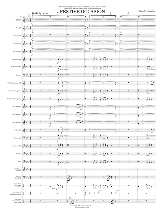 Festive Occasion is a vibrant dynamic work that would be ideal for a competion. This shows everything that a band is capable of doing; clear ariticulations, powerful fortes and sensitive, well balanced lines throughout. The title of the piece aptly describes it. |