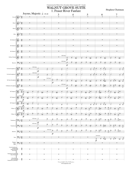 This suite opens with Fraser River Fanfare which reflects the treacherous western Canadian river. In the second movement, entitled A Swallow in the Valley, the folk song She's Like the Swallow is the source. Fort Langley March rounds out this work. This is written in the tradition of early twentieth century military band marches. It contains some unusual harmonic twists which only enhances interest. |