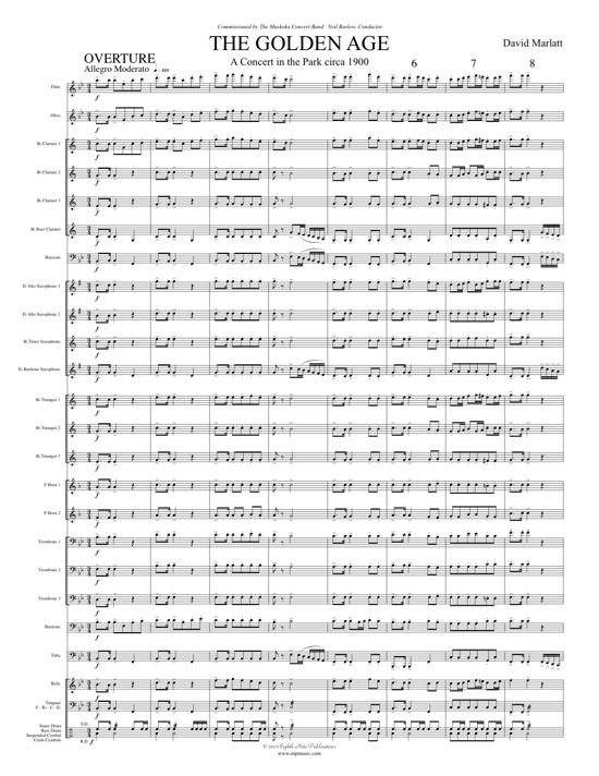 The Golden Age is a piece written in the carefree style of the music written in North America at the turn of the 20th Century. The concerts in band shells throughout Canada and the United States contained such popular compositional types such as: theme and variations, orchestral transcriptions, waltzes, overtures, rags and marches. This four movement suite takes a typical concert at that time, and puts it all in a single, multi-movement work. |