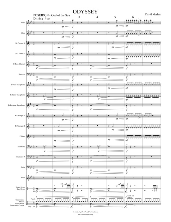 The Odyssey is an ancient Greek epic poem wrtten by the poet Homer. The poem is dated around 600 BC and tells of the events that befall the Greek hero Odysseus in his long journeys after the fall of Troy and when he, at last, returns home. This feeling of adventure and mystery has been captured in this original work set in three movements.