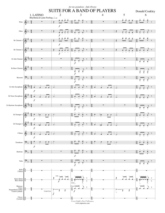 Suite For A Band Of Players is set in three movements, with the middle movement an arrangement of a well known Quebec folksong. The first movement, Latino, represents a synethesis of several Latin-American rhythms. DouViens-tu, Bergere is a folksong of French origin, popular in Quebec. The third movement, Ritual Walk, should have the feeling of a stately processional. A nice suite for young musicians. |