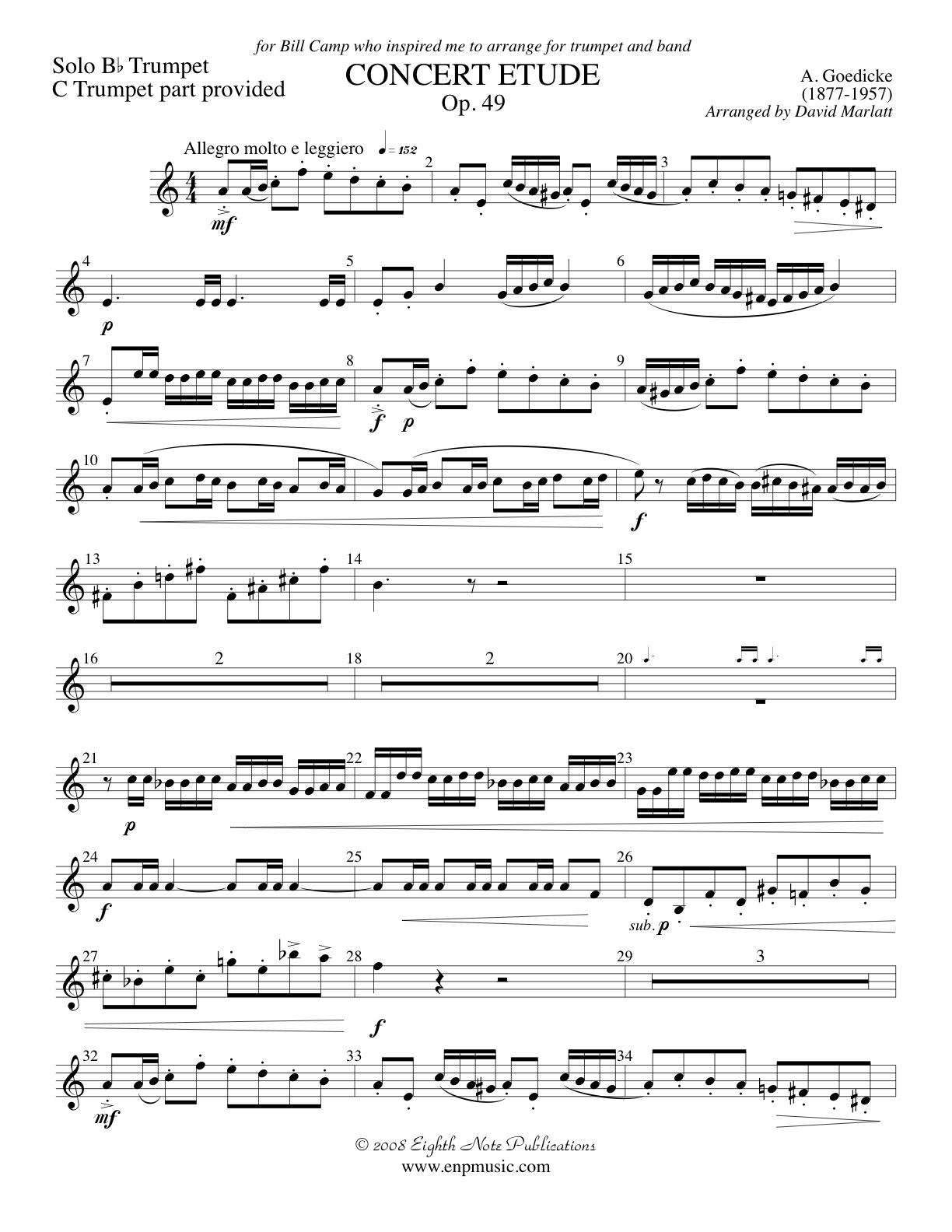 This is a flashy trumpet solo that is often heard in concert, recital and competition situations. The brisk tempo combined with bursts of double tonguing have made this a popular technical showpiece with trumpet players all over the world. This work is on many contest and festival lists and many high school players choose to perform this as an audition piece for college / university. Originally scored for trumpet and piano, the use of a full concert band rather than piano adds a whole new depth, timbre and color to the sound. |
