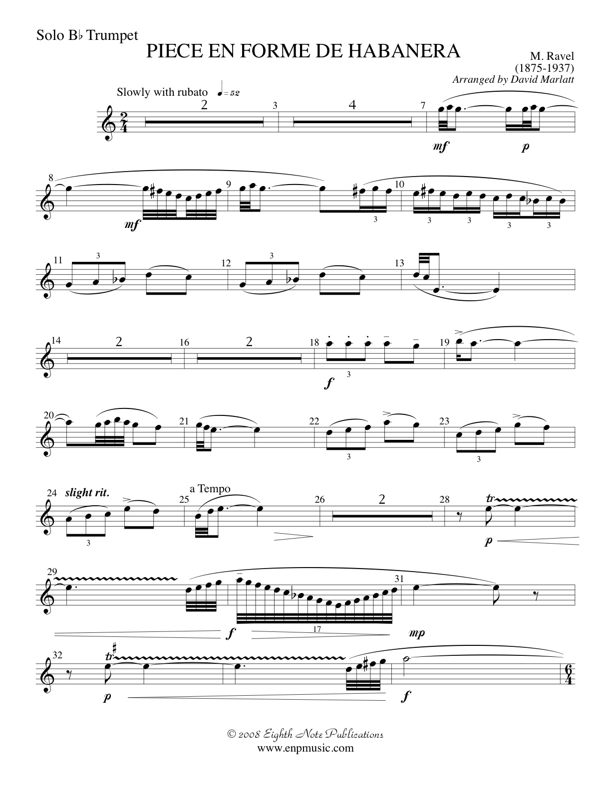 This short piece was originally written for low voice and piano as one of a series of studies by contemporary composers for use in voice classes at the Paris Conservatoire. It was subsequently arranged in various instrumental versions, including one for saxophone and piano, under the title Piece en forme de habanera. Solo parts have been provided for Flute, Oboe, Clarinet, Alto Saxophone, Trumpet and Bassoon/Baritone. |