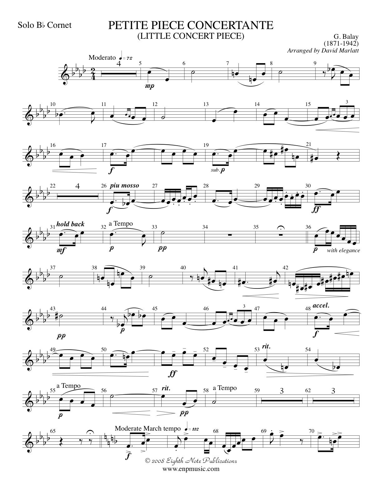 This is a standard piece in solo trumpet repertoire that is used on countless festivals and competitions. The beautiful opening weaves its way through several key centers leading to the March where fast fingers and light articulations come into play. A great piece to show the capabilities of the cornet (or trumpet).
