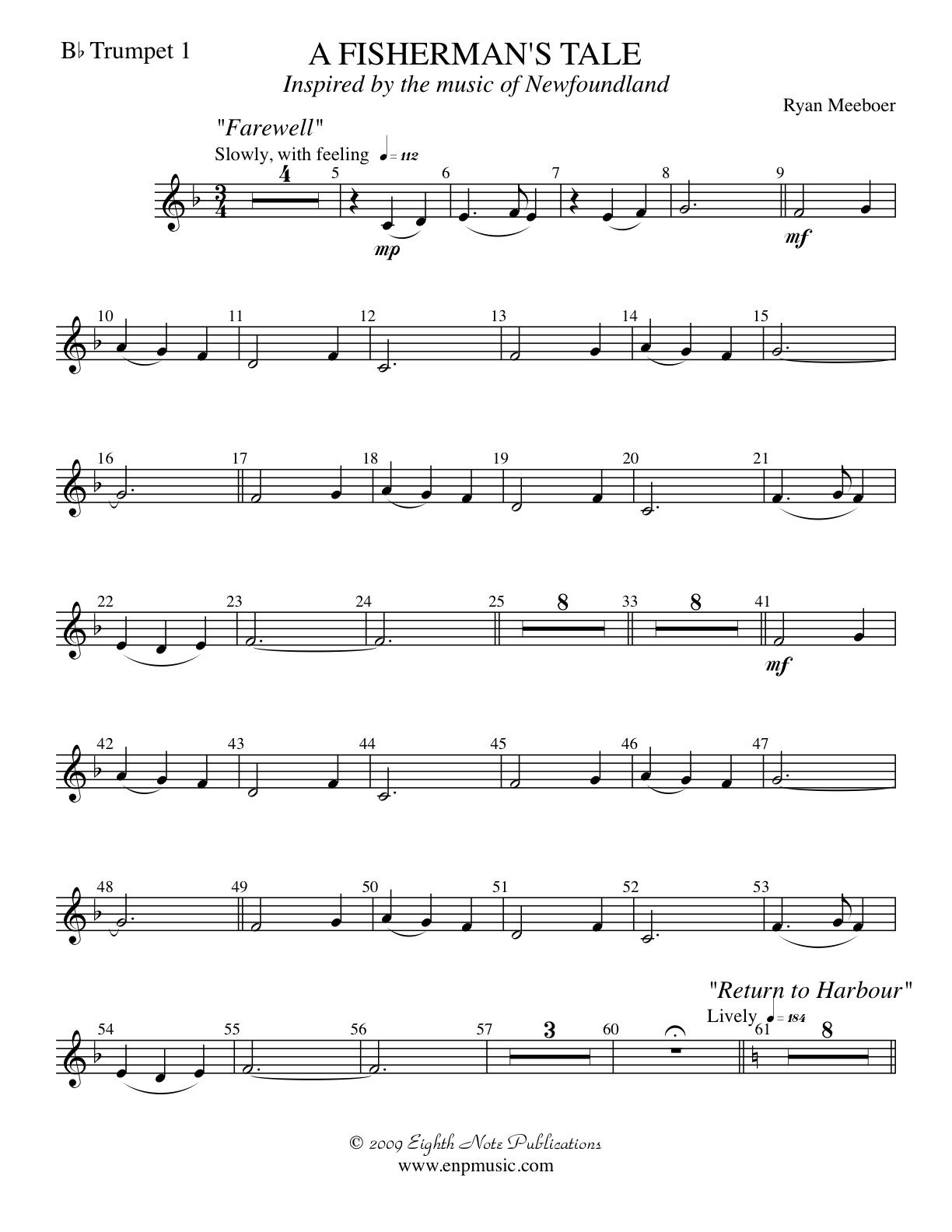 Using the style of Canadian folk songs from the East Coast and the story telling features of Newfoundland, A Fisherman s Tale is a piece about a trip out into the ocean. The piece opens with the solemn, chorale-like movement Farewell, as the fisherman leaves his home and family to begin the excursion, and closes with Return to Harbour, an up tempo movement representing the worker s successful homecoming. |