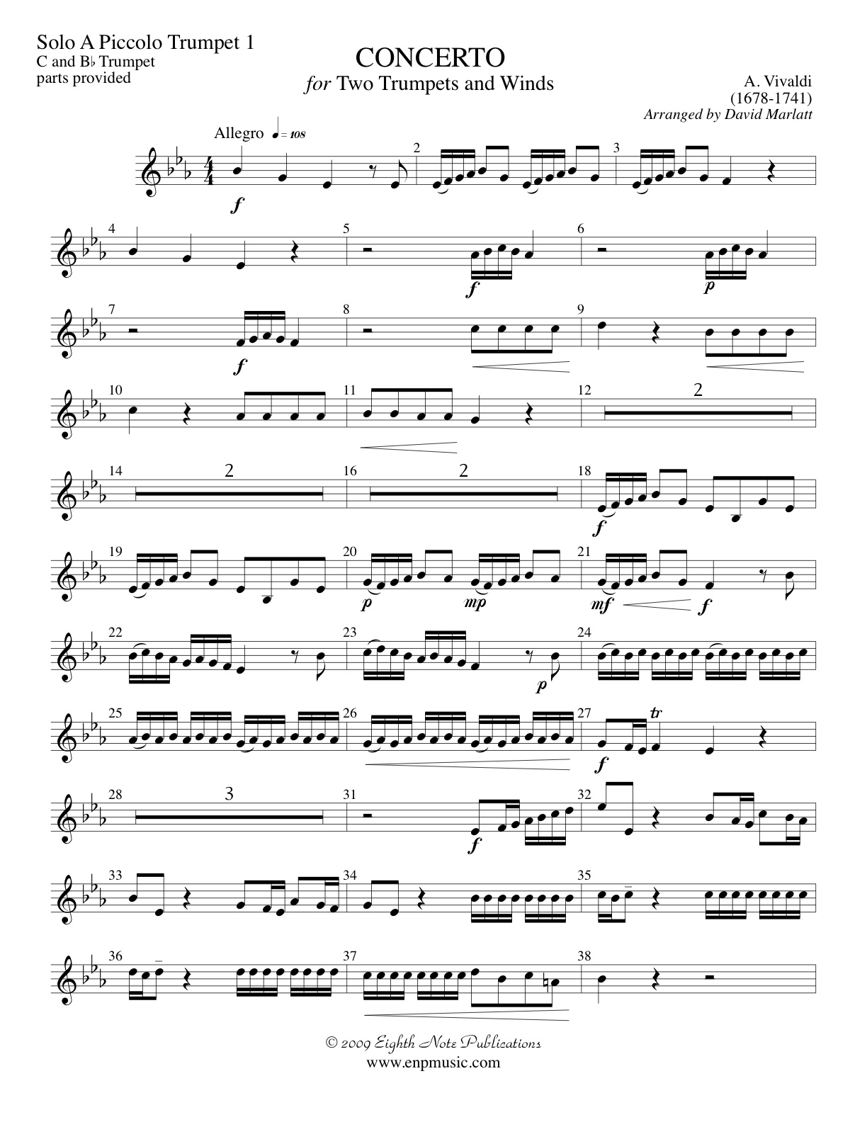The original trumpet parts are unaltered and the remainder of the ensemble perform the string parts. |