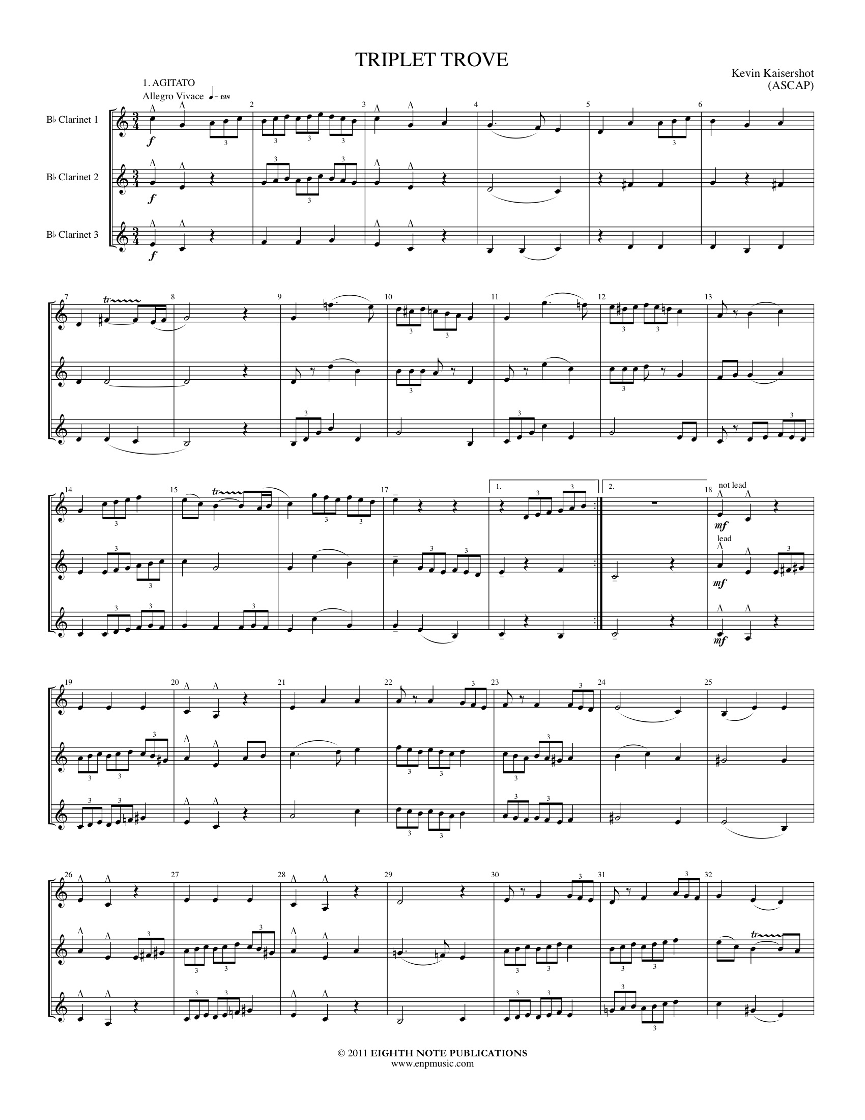 Triplet Trove is a concept piece designed to teach the use of the triplet figure within a musical composition. The number three therefore figures prominently in its structure as it is written for three instruments, in three movements, all of which are in 3/4 time.