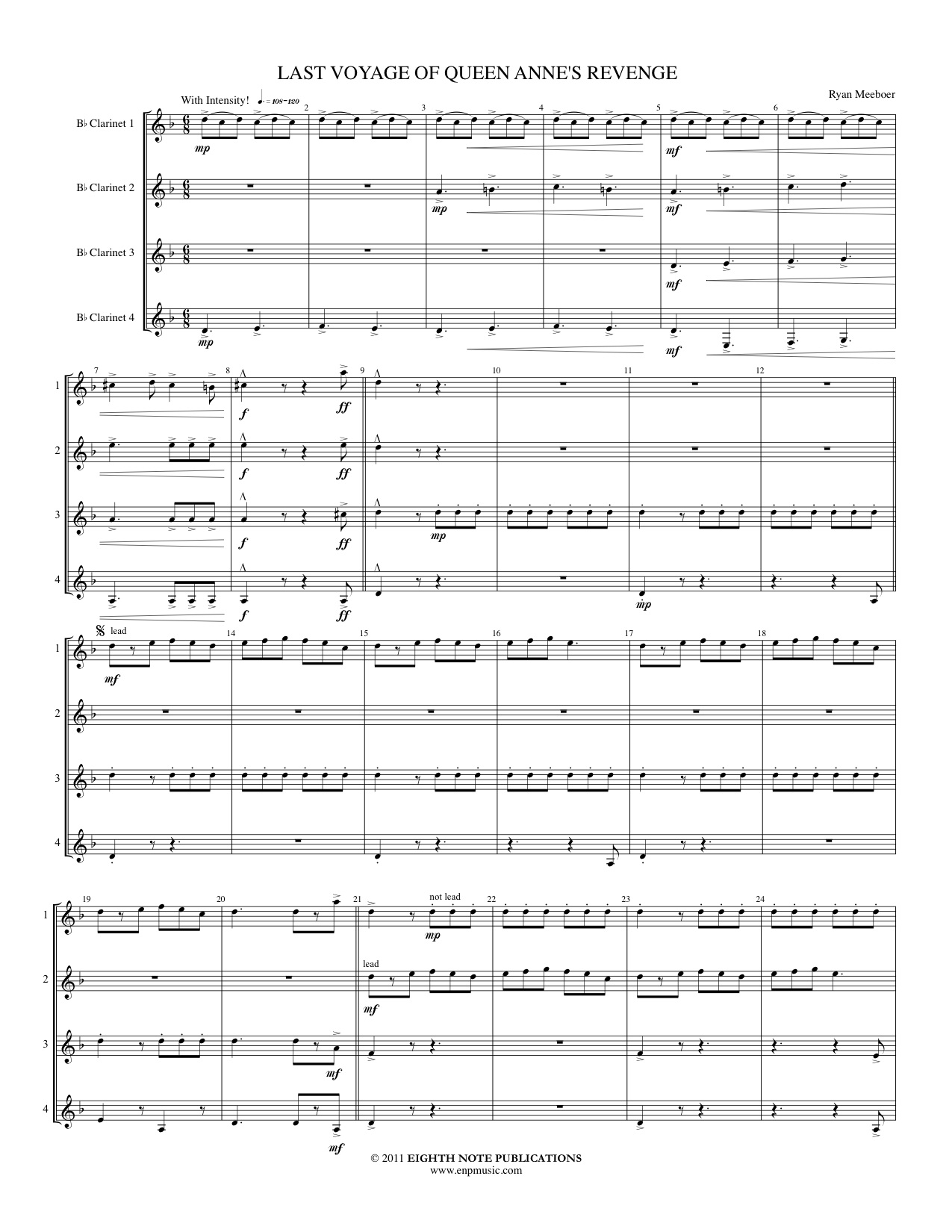 The Queen Anne s Revenge was the final ship sailed by Edward Thatch, also known as the pirate, Blackbeard. To give the "pirate-like" feeling to the music, it has been composed in 6/8 time, as have many pieces about pirates. This is an arrangement of the best selling work for young concert band. |