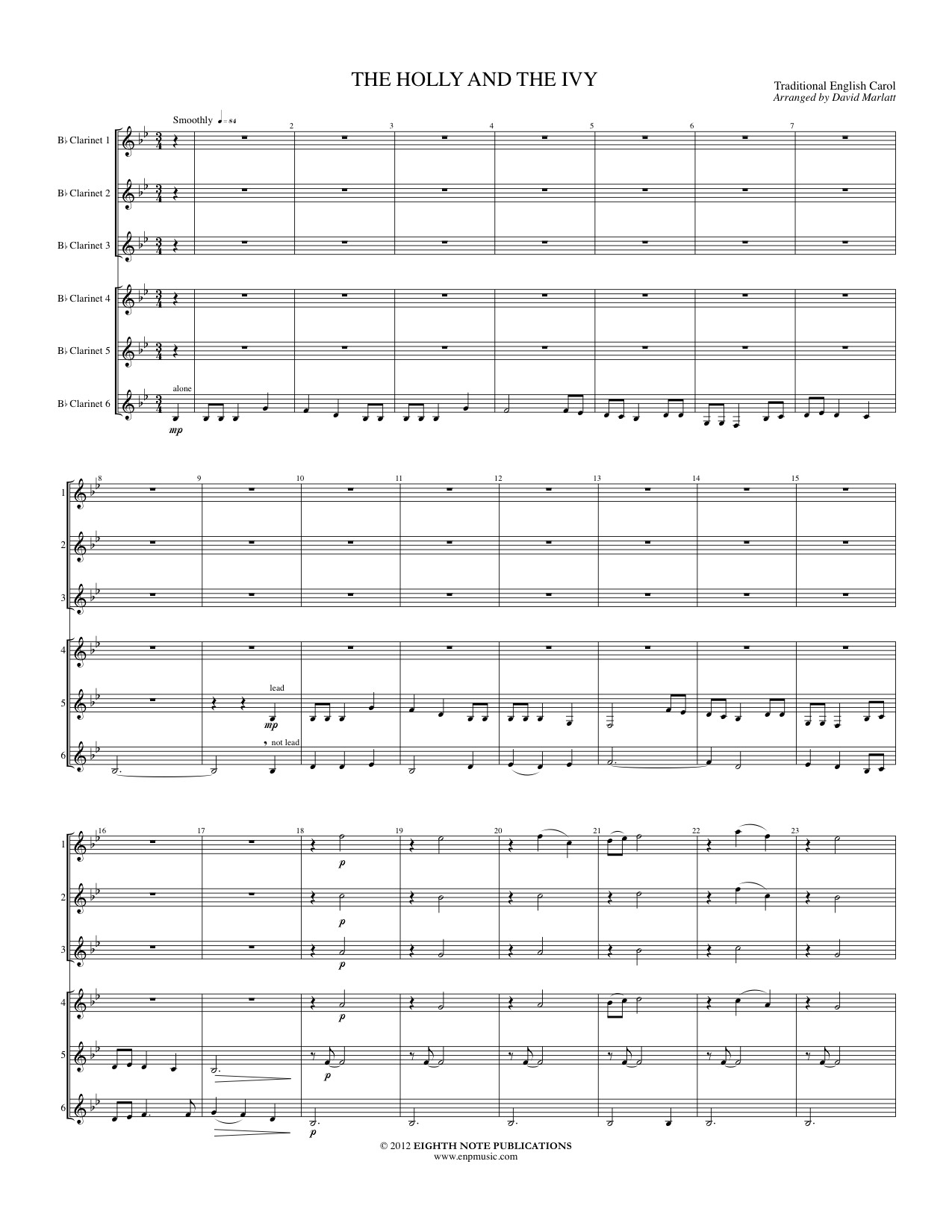 The Holly and the Ivy is a traditional English Christmas carol. Holly and ivy have been important as English Christmas decorations for church use since at least the fifteenth century. This piece is flowing and smooth, quiet and reflective.